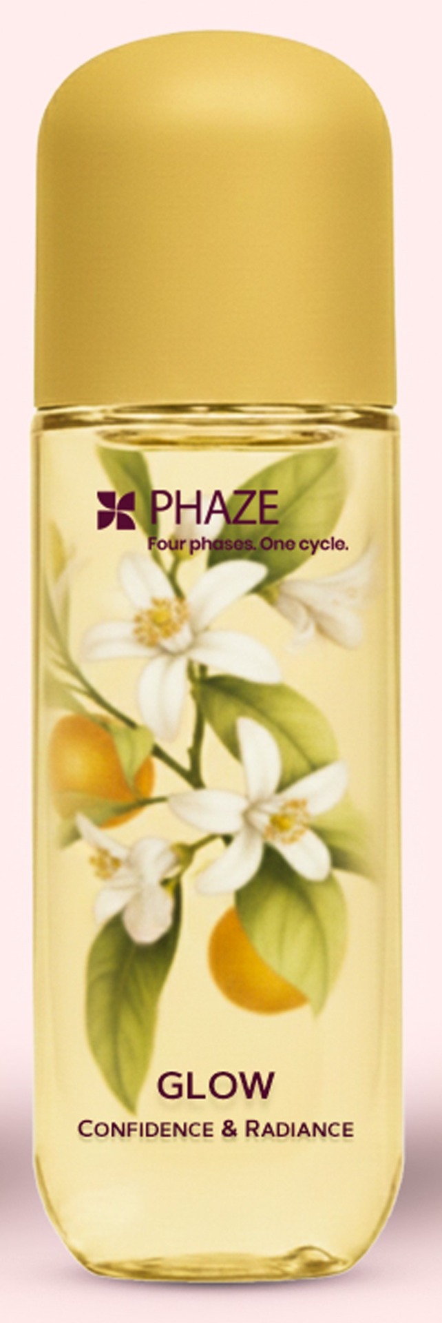 GLOW (Ovulation) CONFIDENCE & RADIENCE Feeling : Social, magnetic, open Botanical direction : Citrus, Ylang-Ylang and Neroli for expressive, confident and expansive scent that amplifies your natural radiance.